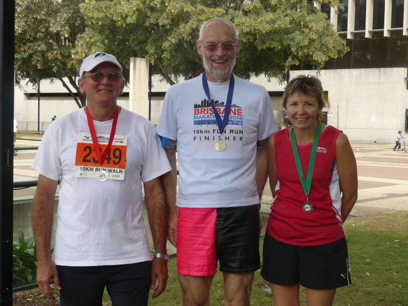The 10km Walk has a small field, but you’ve got to be in it to win it! Brian Meharg strode home in an amazing time of 1hr10, followed by John Redsell and Colleen Moss. The result of the race was thrown into confusion with claims of running leveled at some walkers but common sense prevailed and the medal ceremony went ahead without protest.