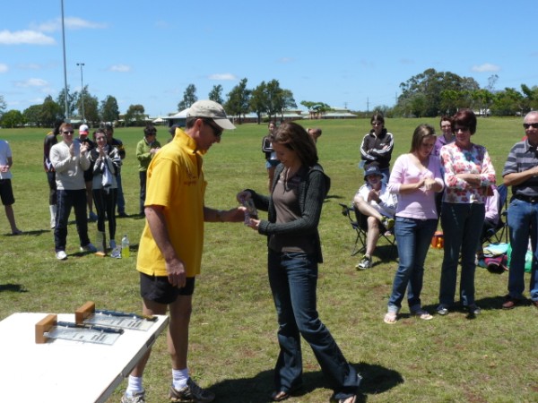 Stan is presented the marathon trophies